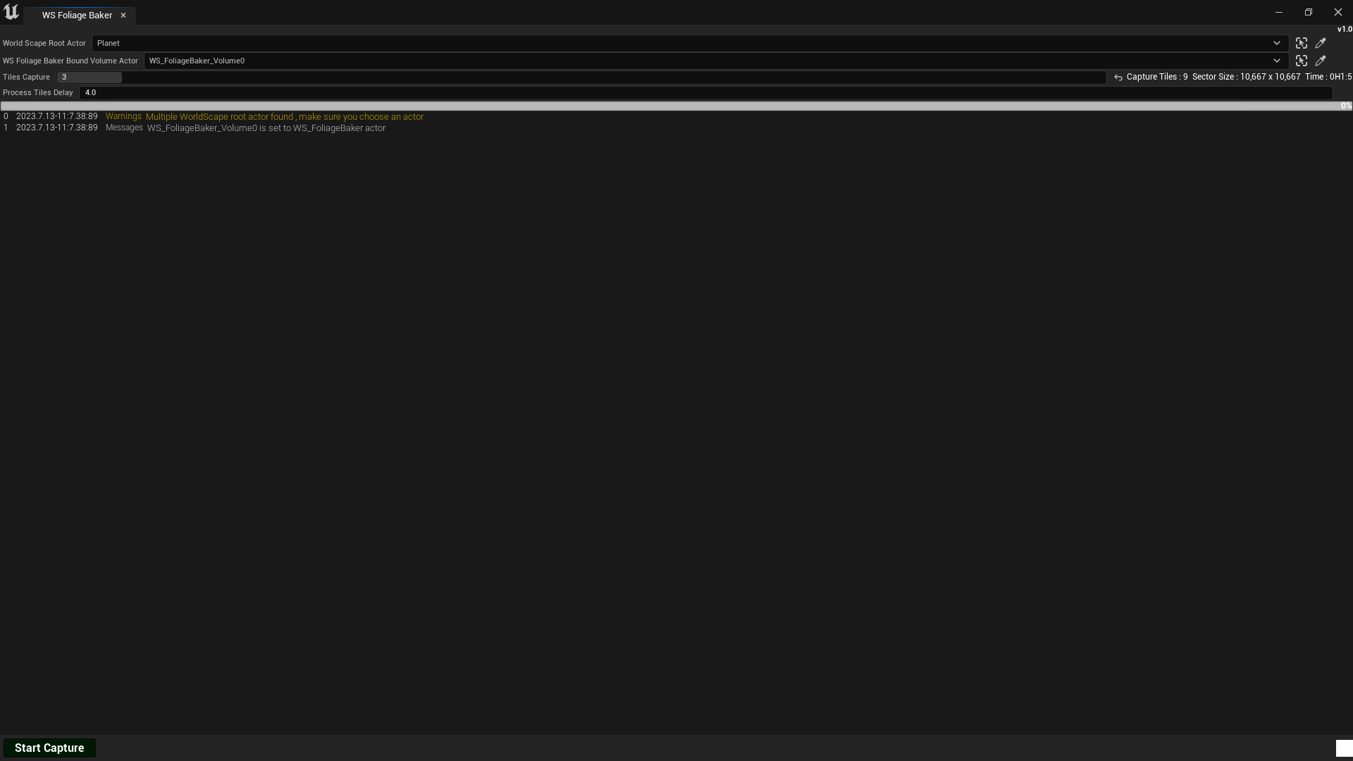 5. Click "Start Capture" to begin baking procedural foliage into static meshes.
